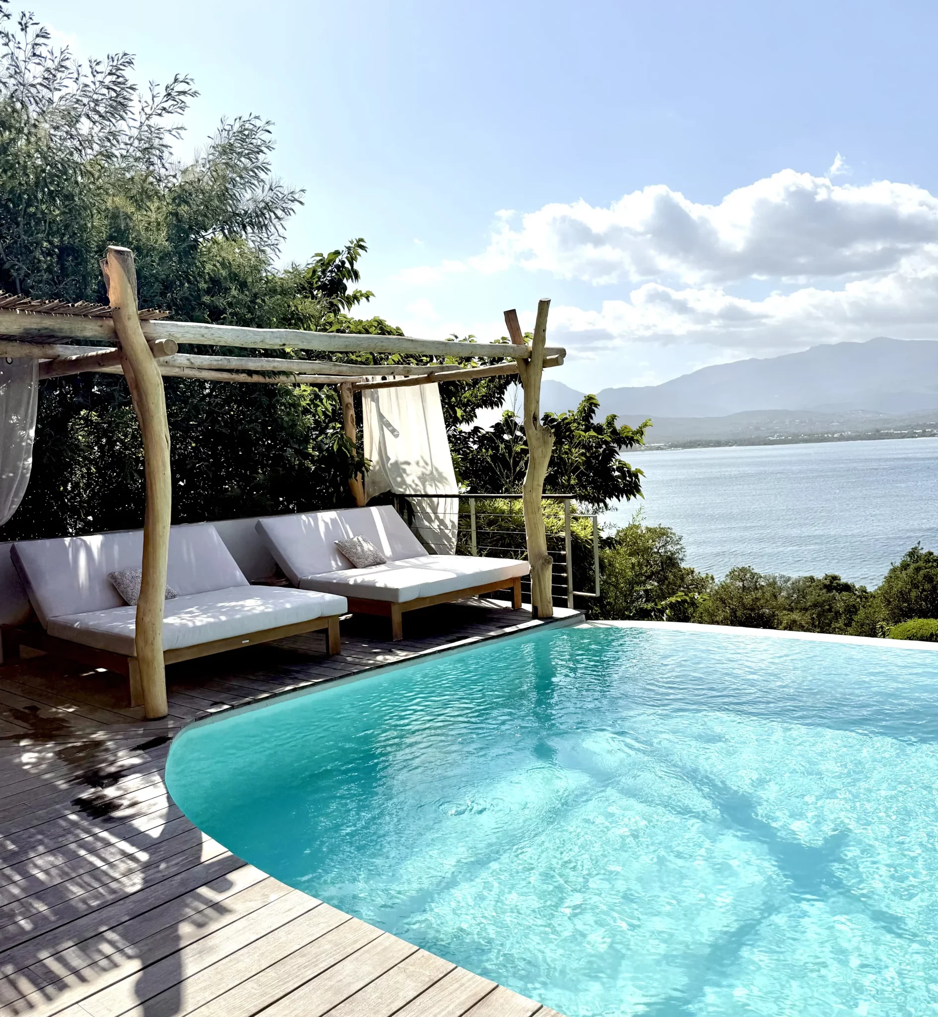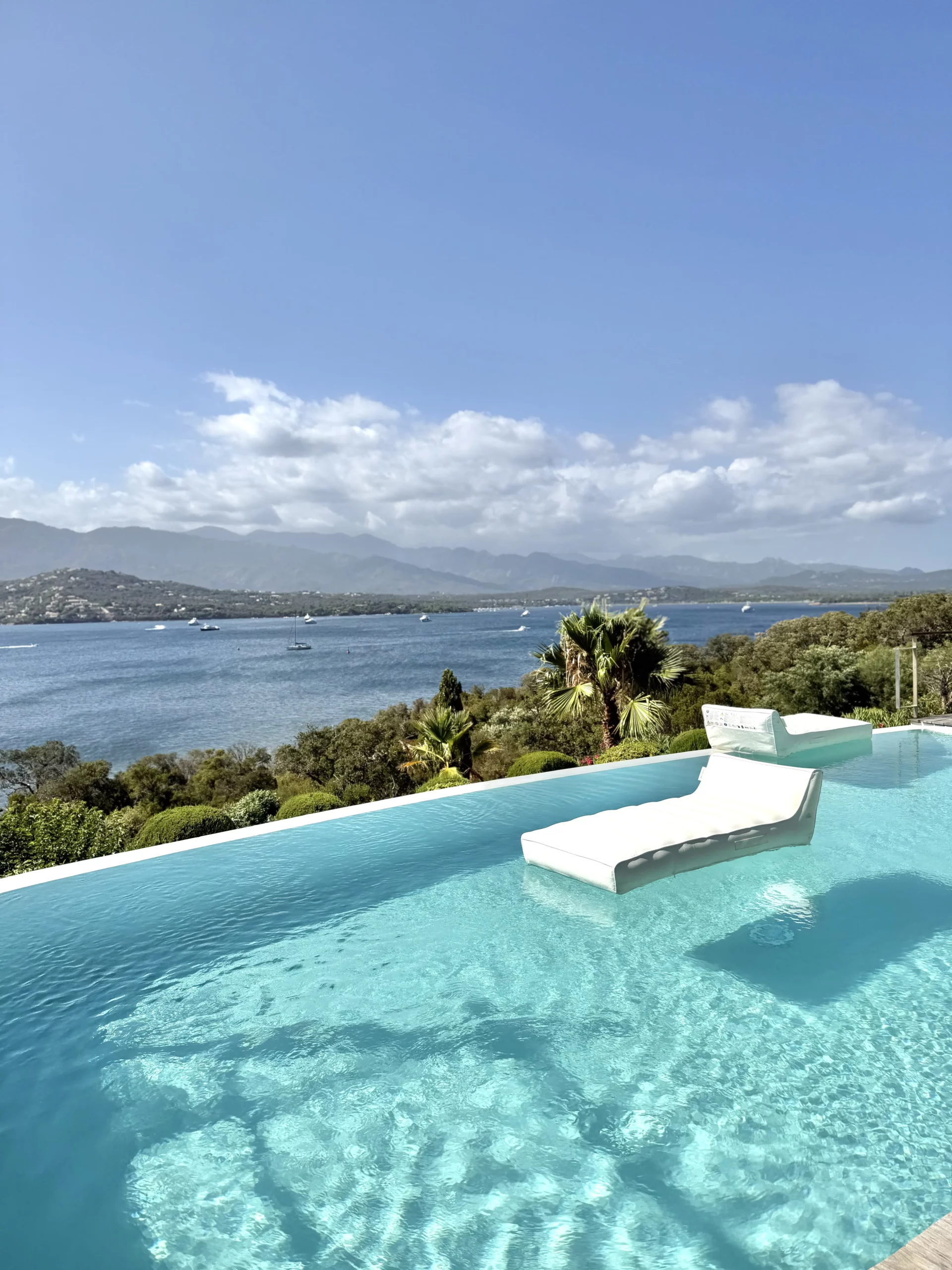 La galerie photo de la Villa Blue, location de villa avec plage privée en Corse du Sud, vous plonge dans l’univers d’une villa de luxe en Corse du Sud, au cœur de Palombaggia, l’une des plages les plus renommées de Méditerranée. Située à quelques minutes de Porto‑Vecchio, cette maison de vacances avec plage privée incarne l’élégance, le confort, et l’harmonie entre architecture contemporaine et nature préservée. Découvrez en images les différents espaces qui composent ce lieu d’exception, de la piscine à débordement aux chambres climatisées, en passant par les salons extérieurs, la terrasse vue mer ou encore le jardin méditerranéen. Chaque photographie illustre un détail de cette propriété unique, pensée pour accueillir jusqu’à 13 personnes dans un cadre haut de gamme.