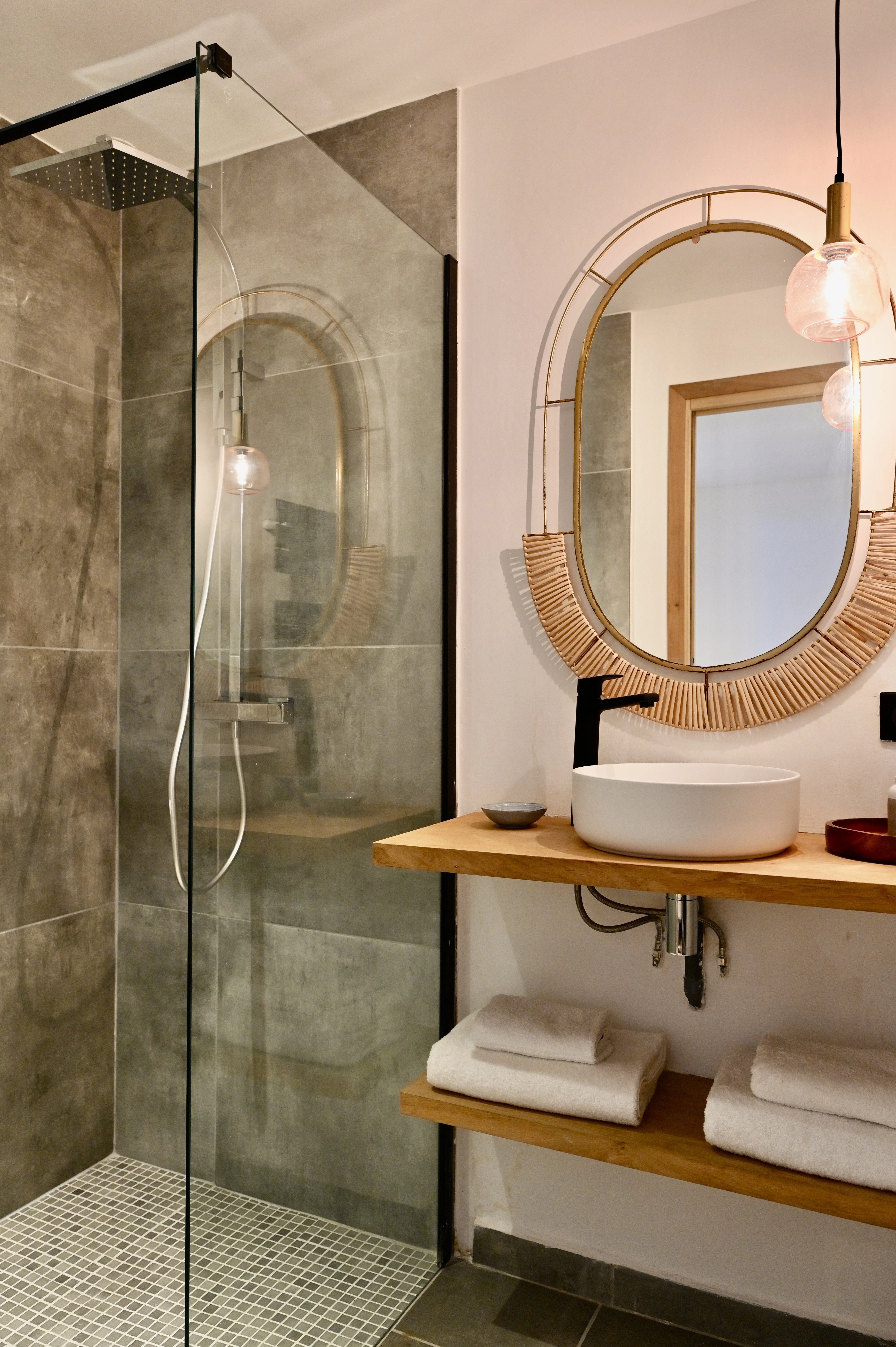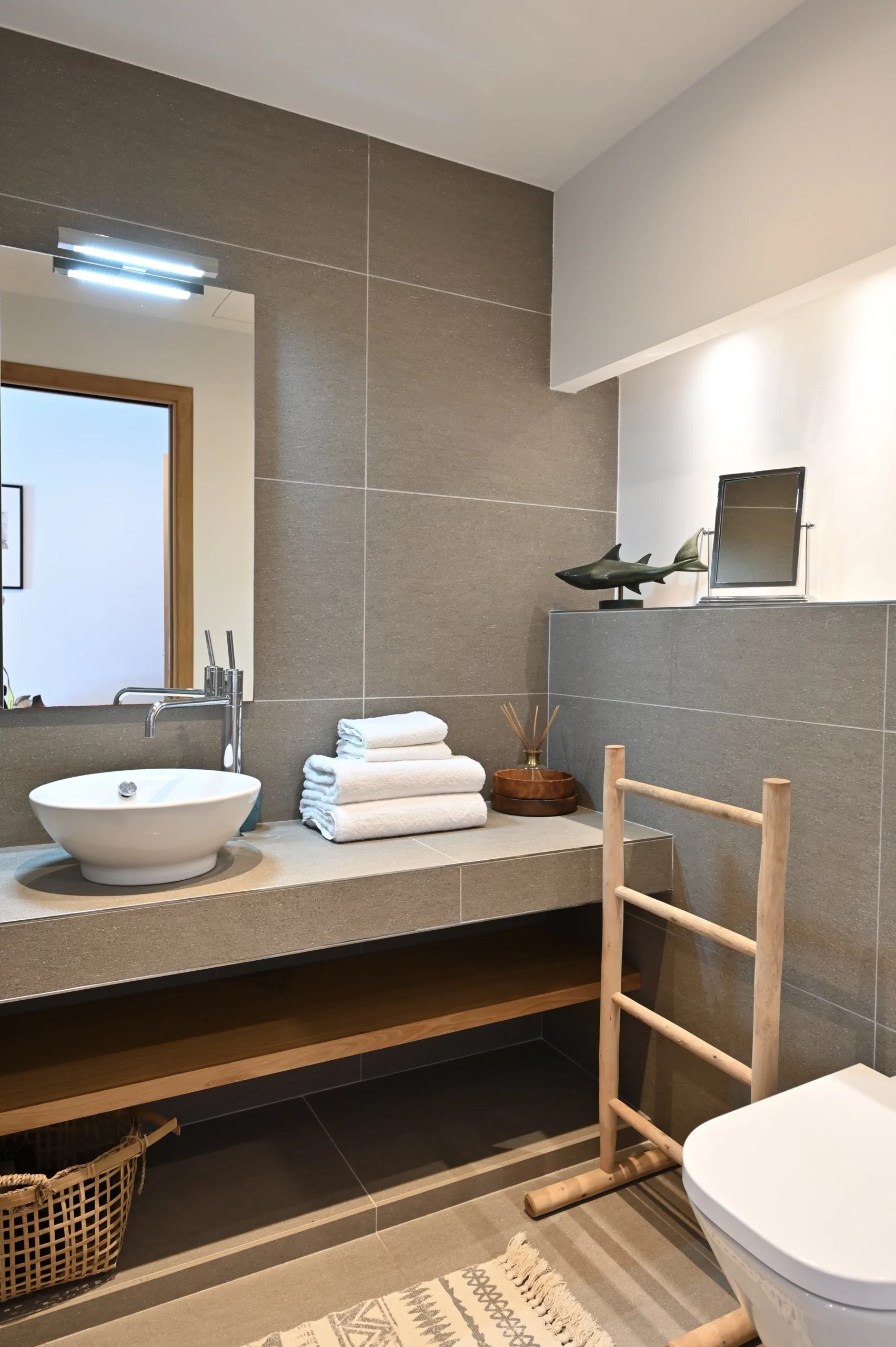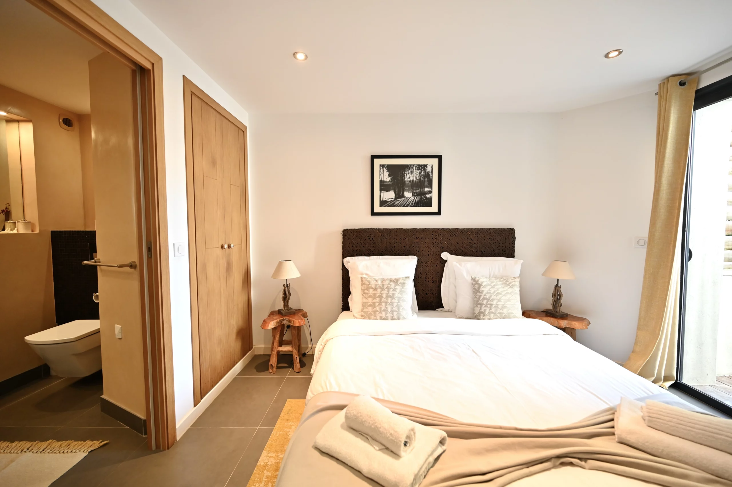 Les chambres de la Villa Blue, location de villa avec plage privée en Corse du Sud, au nombre de sept, sont conçues pour garantir confort, intimité et design. Chacune bénéficie d’une salle de bain privative, d’une literie de qualité supérieure, de la climatisation, et de rangements fonctionnels. Les images présentes dans cette galerie mettent en valeur ces espaces reposants, décorés dans un style sobre, moderne et naturel. Que ce soit les chambres vue mer ou les chambres côté jardin, chaque espace vous assure une nuit paisible dans une atmosphère raffinée. Cette villa de location en Corse du Sud est idéale pour accueillir des familles nombreuses ou des groupes d’amis à la recherche d’un séjour haut de gamme.